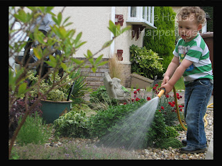 Just before lunch we popped over to see my parents, we had lunch there, I took mother round to the garden centre to get a few bits she needed for her garden. She then let Jnr water her garden with the hose pipe. All was going really well ....